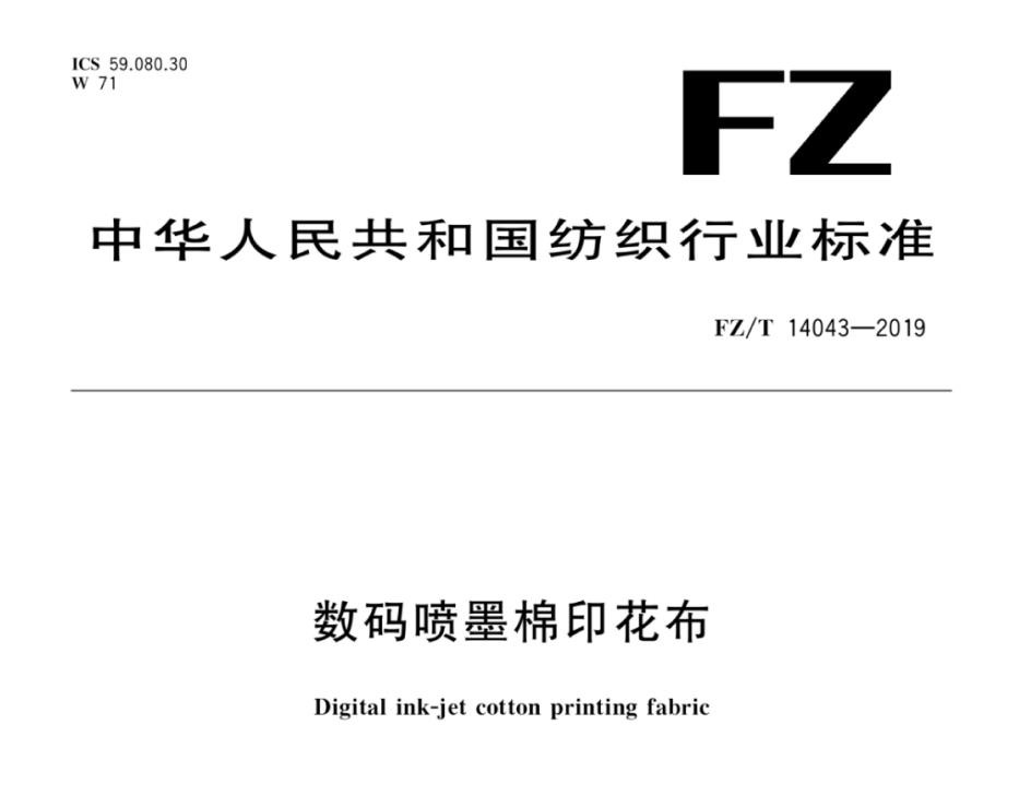 查看高清完整版最新檢驗標準,請點擊右側下載!FZ∕T 14043-2019 數碼噴墨棉印花布