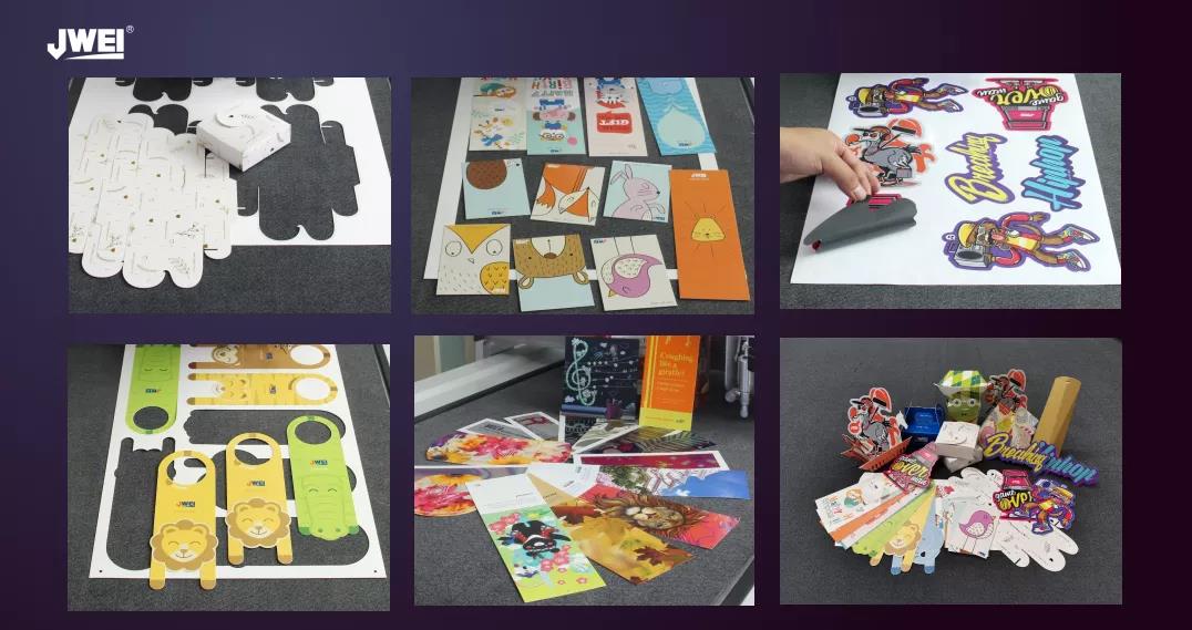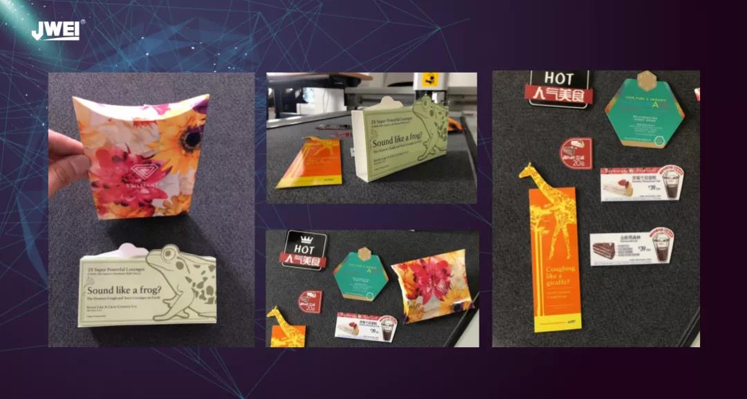 比如KT板、瓦楞紙、折疊紙盒、實心板、泡沫板、橡皮布、紡織品、纖維板以及一係列不幹膠標簽等。