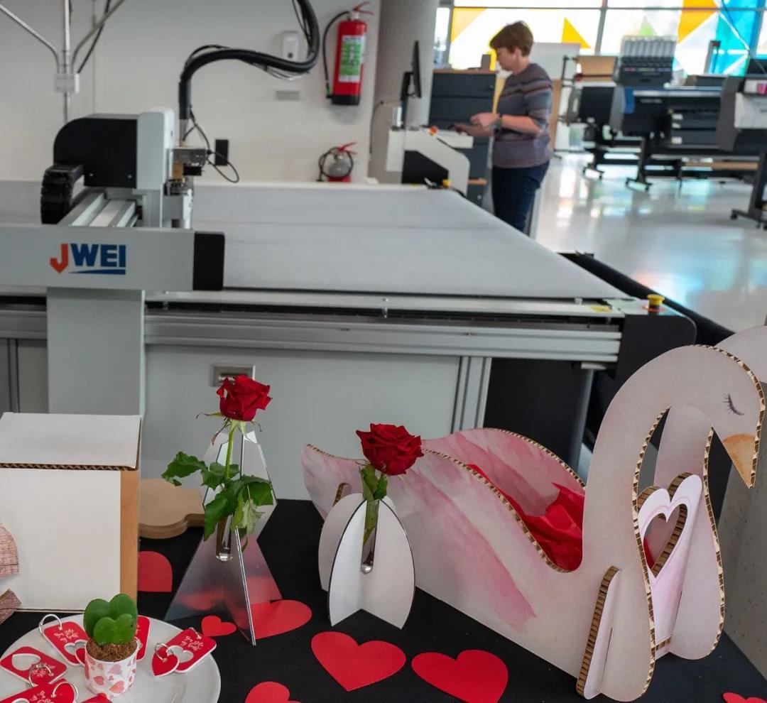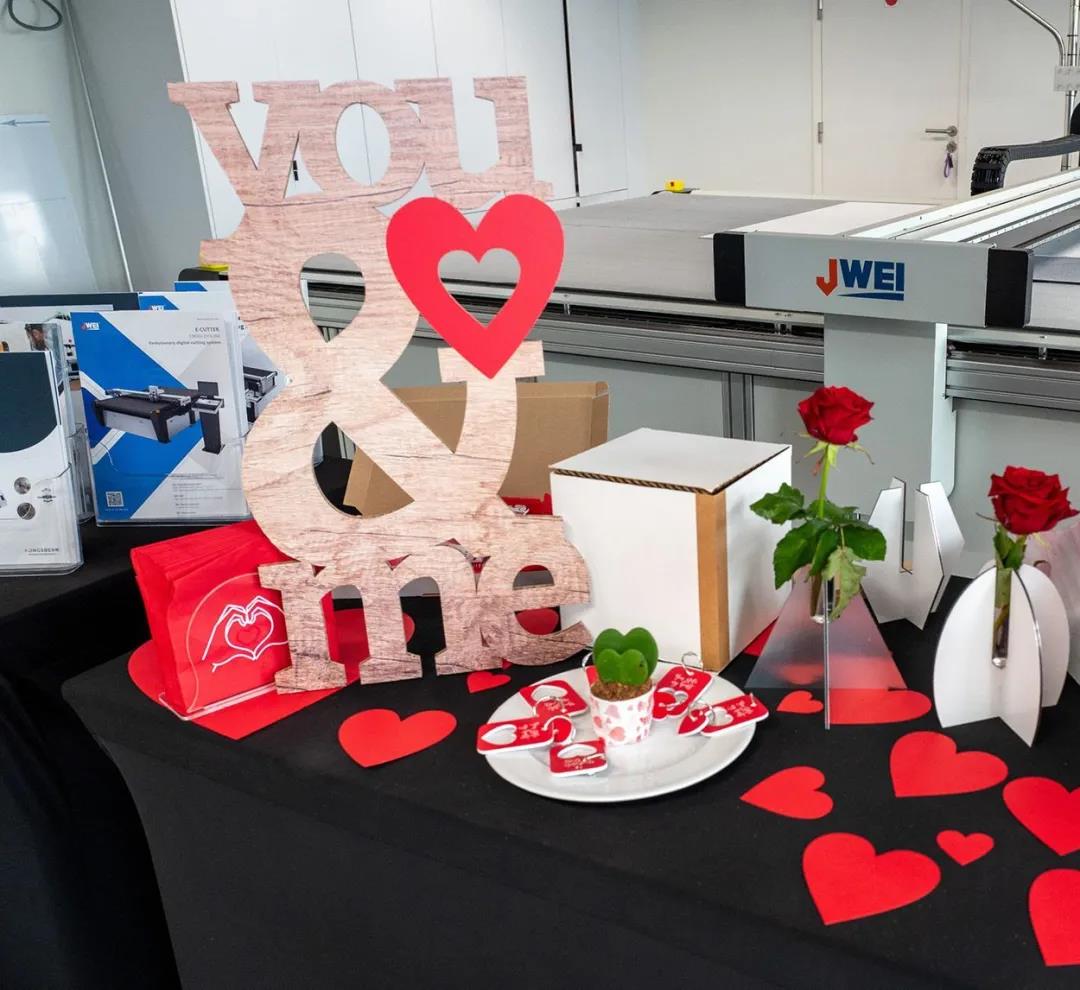 圖為Igepa分公司利用香蕉视频在线观看视频切割機香蕉91视频APP產品,打造情人節氛圍現場。