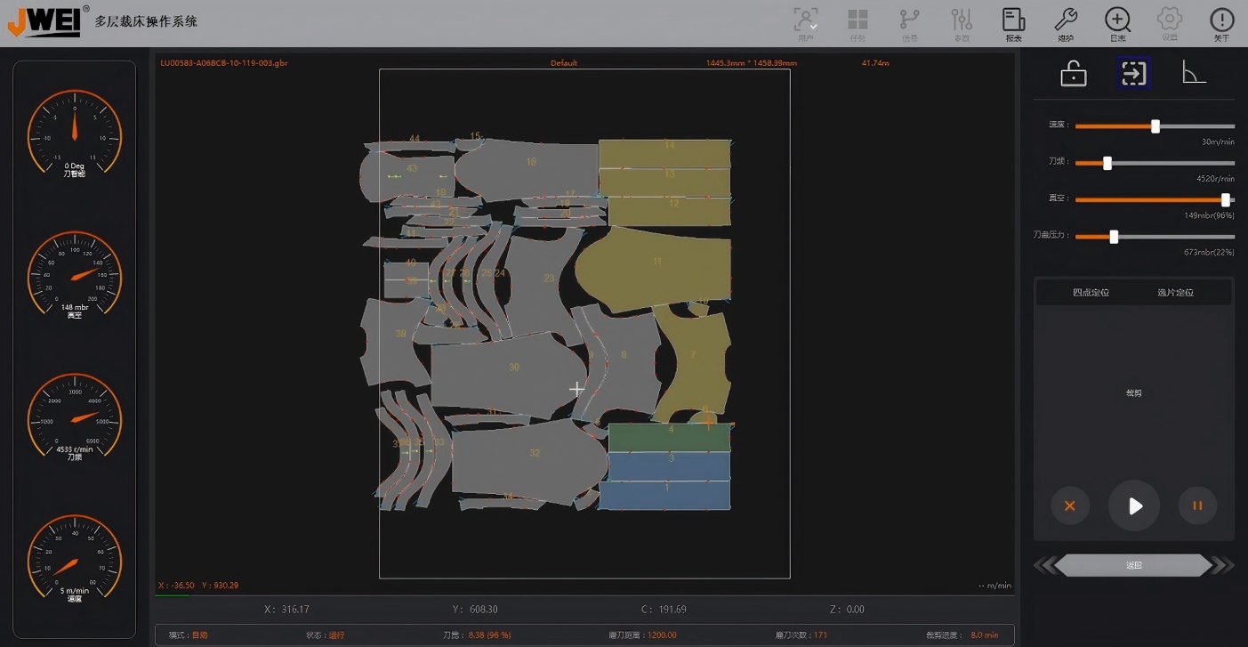 香蕉视频在线观看视频突破性推出MI係列智能多層裁床,搭載“真邊走邊裁”核心技術,實現高達100米/分鍾的高速切割效能,同時通過AI視覺定位與零間距裁剪技術將麵料利用率再提升5%。其標配即頂配的全時動態變頻真空吸附係統,確保針織至複合PVC等多種柔性材料香蕉91视频APP時層間公差嚴格控製在±1mm內,配合易覽(Easy Viewing)、易設(Easy Setting)等創新性智能模塊,顯著降低操作難度。該係列可廣泛應用於服裝、汽車內飾、醫療防護材料領域,為高效精密香蕉91视频APP樹立新基準。